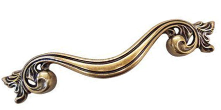 Celokovová jednodílná úchytka ze slitiny zinku galvanicky pokovená odstínem staré zlato, bez šroubků M4 pro uchycení