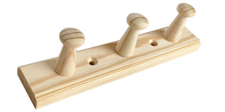 Celodřevěná tříkolíková věšáková sestava, vyrobená z borového dřeva bez