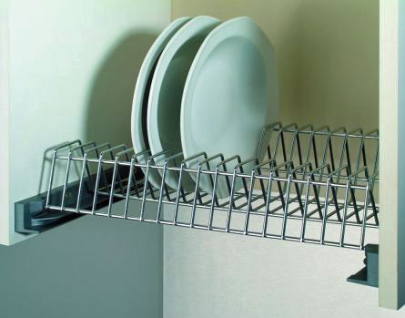 Vestavný chromovaný odkapávač, police na talíře do horních skříněk kuchyňské linky šířky 600mm. Konstrukce neumožňuje namontovat jako dno skříňky. Plastové bočnice jsou opatřeny drážkou, do které lze zasunout nerezovou nebo plastovou misku k zachycení odkapané vody.