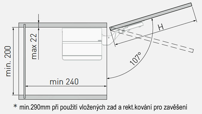 Minimální vnitřní rozměr korpusu: světlá výška 200mm, hloubka 240mm