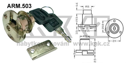 pokovený,dodávaný včetně dvou kusů cylindrických klíčků.