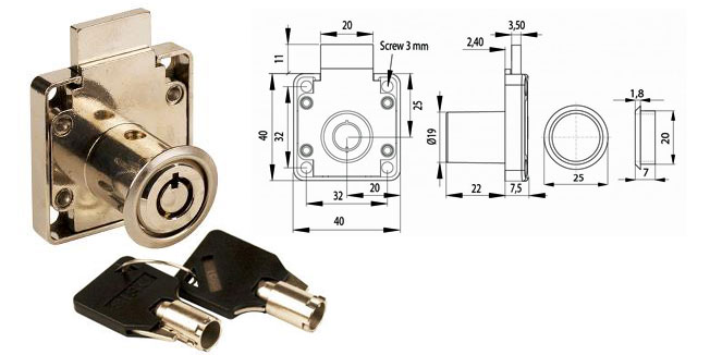 Speciální celokovový zásuvkový zámek galvanicky pokovený, dodávaný v krabičce včetně dvou kusů trubkových klíčků. Vysoký počet kombinací (2000ks), klíč lze vytáhnout pouze v uzamčené poloze. Zámek vhodný například ke skříňkám do posiloven, bazénů a podobně.