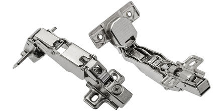 Speciální tlumený 35mm celokovový závěs s úhlem otevření 0-165stupňů, roztečí děr 45mm, včetně klipové podložky na vruty.