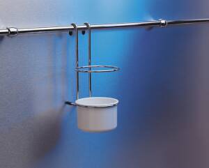 Kód produktu: K 003 30.80 Závěsný drátěný koš vyrobený z galvanicky chromované oceli a plastu, pro odkládání pomůcek pro vaření. Rozměry: d.108 š.194 v.263 mm