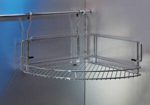 Kód produktu: K 007 30.80 Drátěná police, vyrobená z galvanicky chromované oceli, k odložení libovolných předmětů při práci v kuchyni. Možno do levého i pravého rohu. Rozměry: d.360 š.380 v.263 mm